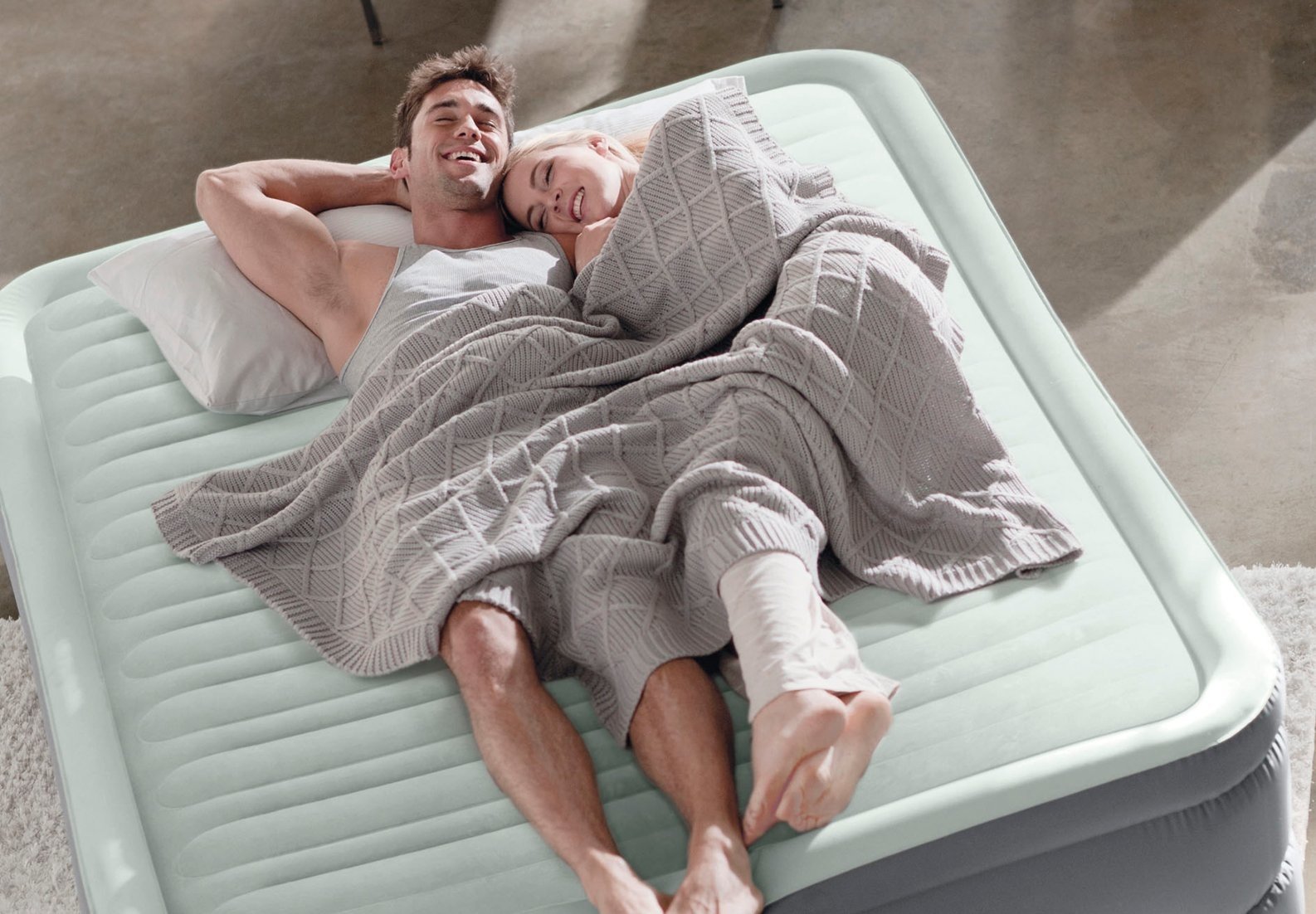 Intex heeft de bovenkant van het matras voorzien van een superzachte toplaag (PremAire™). Dit voelt zeer aangenaam aan. Toch raden we u aan om altijd te slapen met een Intex hoeslaken.